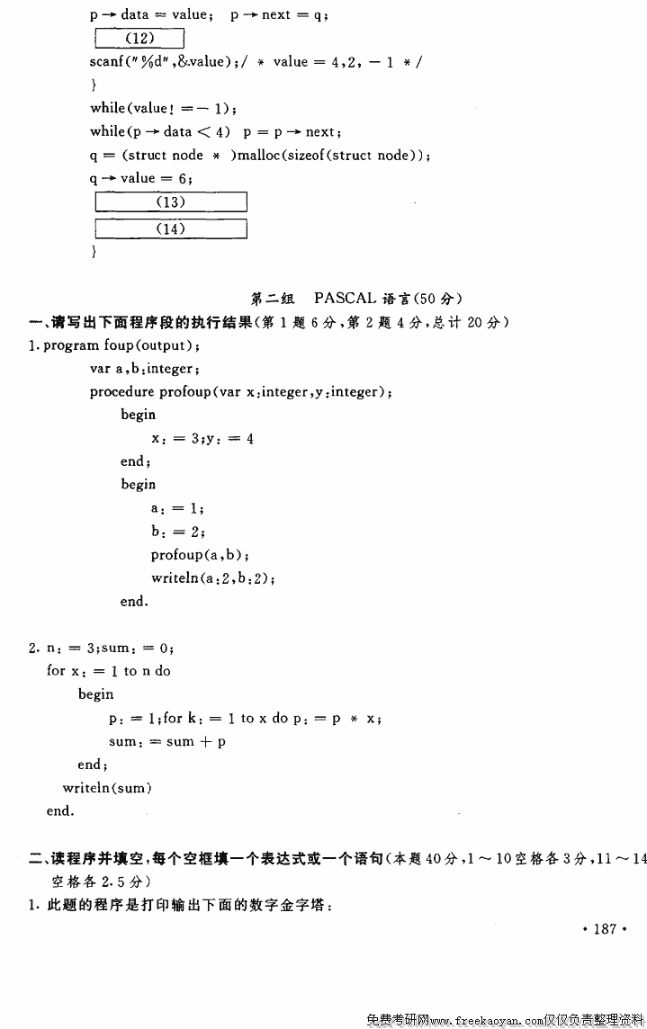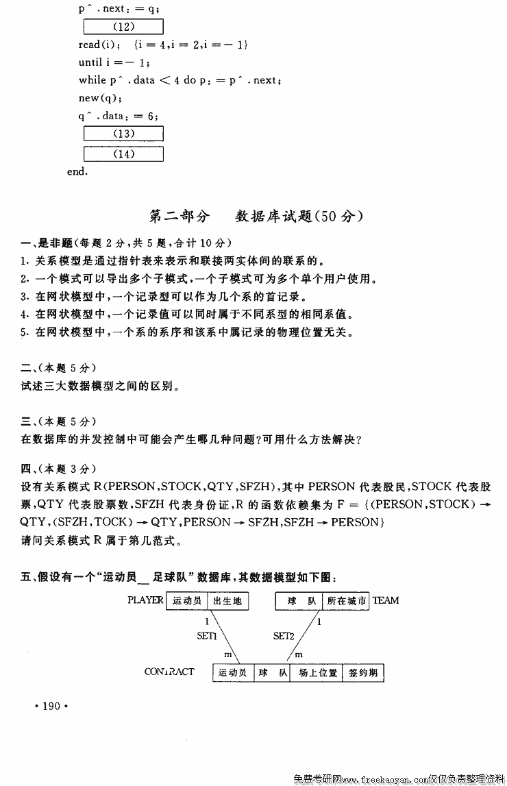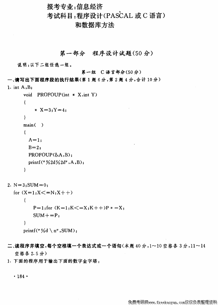 上海财经大学1996年考研真题-程序设计(PASCAL或C语言)和数据库方法