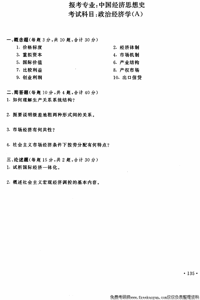 专业课考研经验 本站小编 FreeKaoyan 2018-01-22上海财经大学1996年考研真题-经济学(西方宏观经济学与社会主义政治经济学)