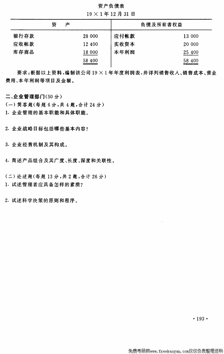 相关话题/考研真题 上海财经大学 会计学 企业管理 工业