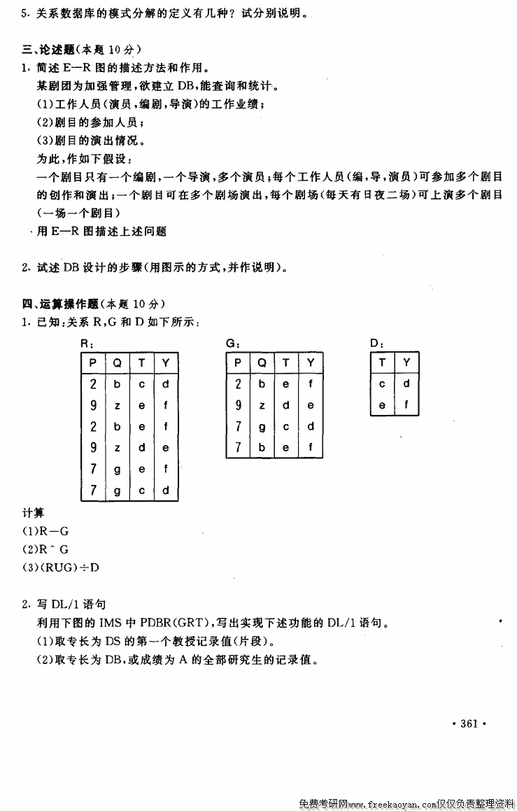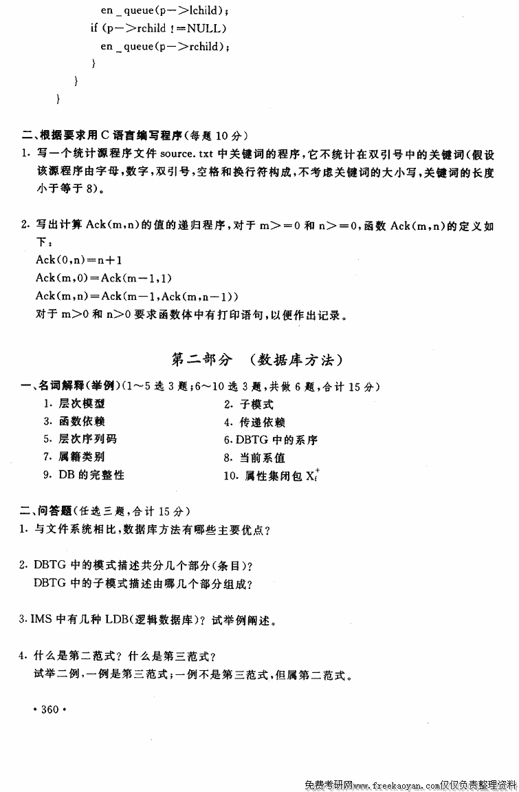 上海财经大学1998年考研真题-程序设计(PASCAL或C语言)和数据库方法二