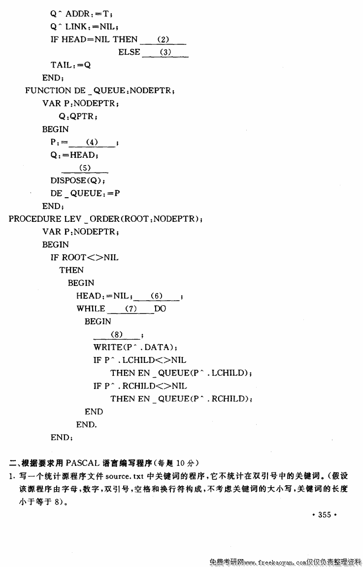 专业课考研经验 本站小编 FreeKaoyan 2018-01-22上海财经大学1998年考研真题-程序设计(PASCAL或C语言)和数据库方法二