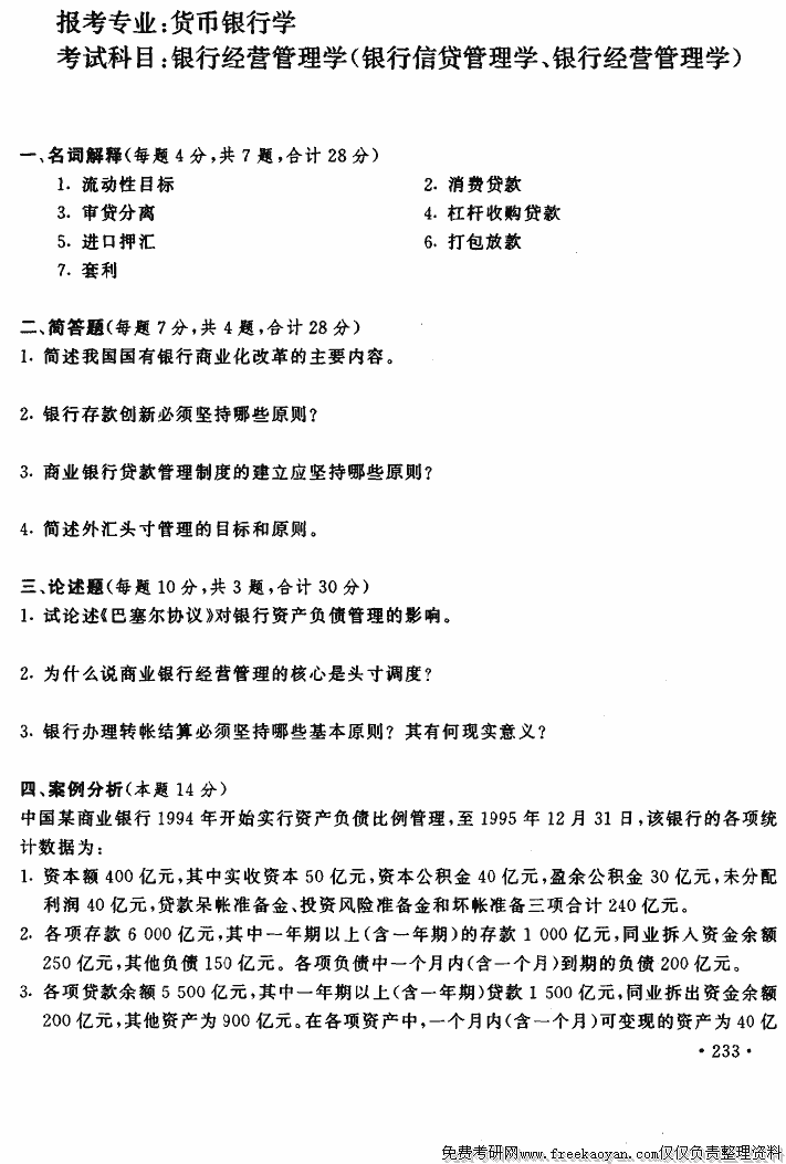 专业课考研经验 本站小编 FreeKaoyan 2018-01-22上海财经大学1998年考研真题-货币银行学(货币银行学原理、银行经营管理学)
