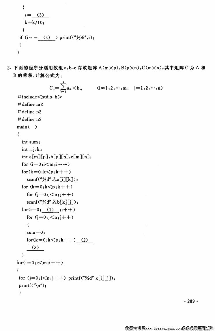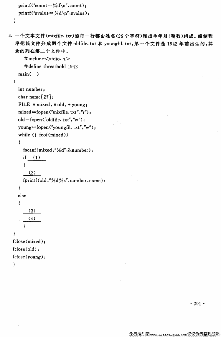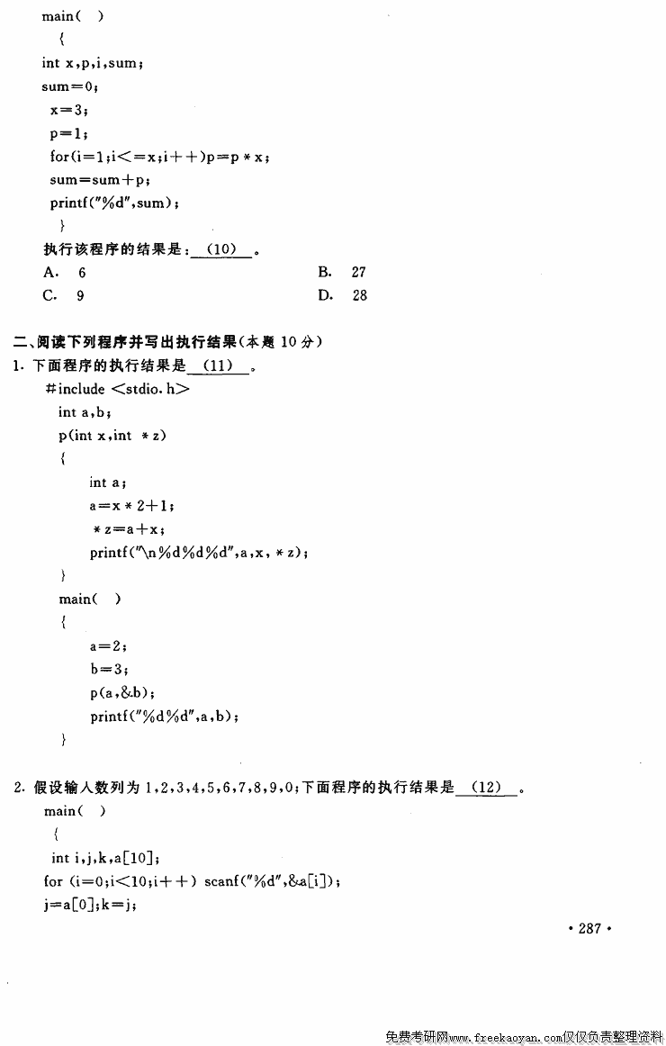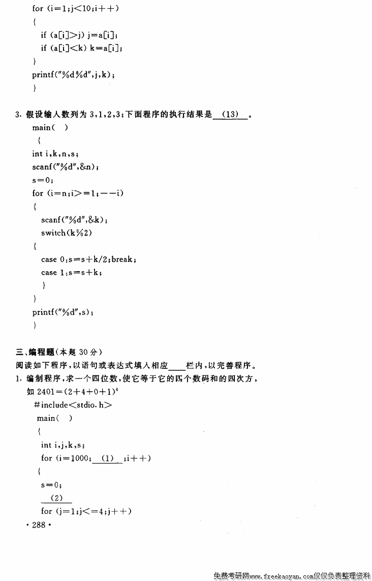 专业课考研经验 本站小编 FreeKaoyan 2018-01-22上海财经大学1997年考研真题-程序设计C语言
