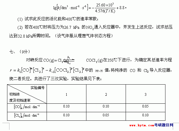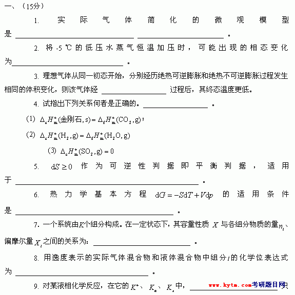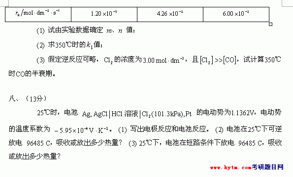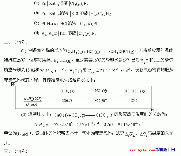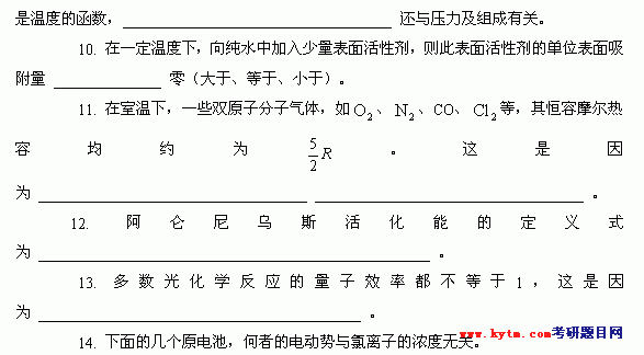 专业课考研经验 本站小编 FreeKaoyan 2018-01-22华东理工大学2001年考研真题-物理化学