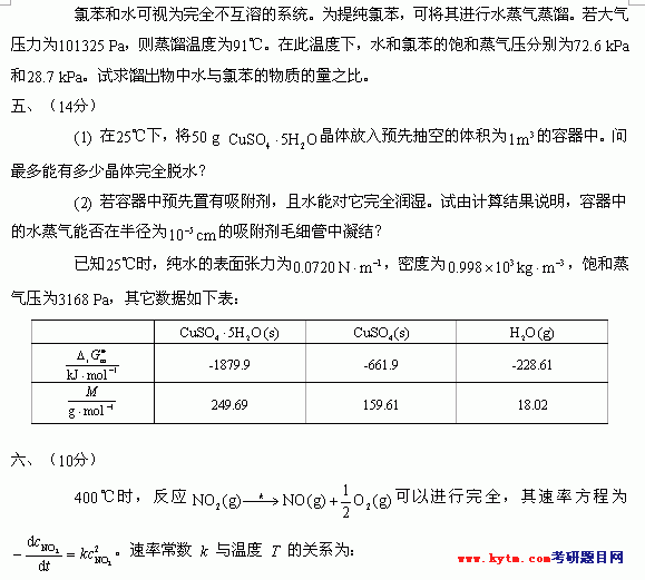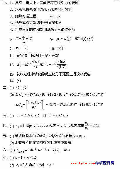 相关话题/华东理工大学 考研真题 物理化学