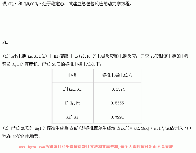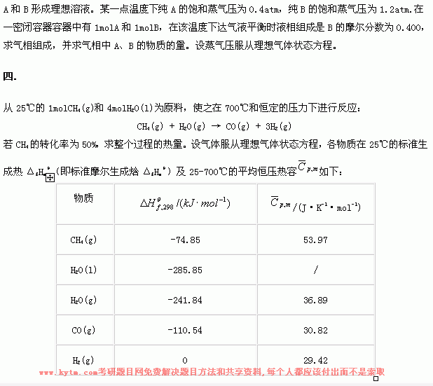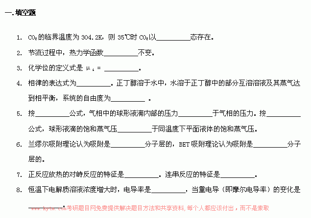 专业课考研经验 本站小编 FreeKaoyan 2018-01-22华东理工大学2000年考研真题-物理化学