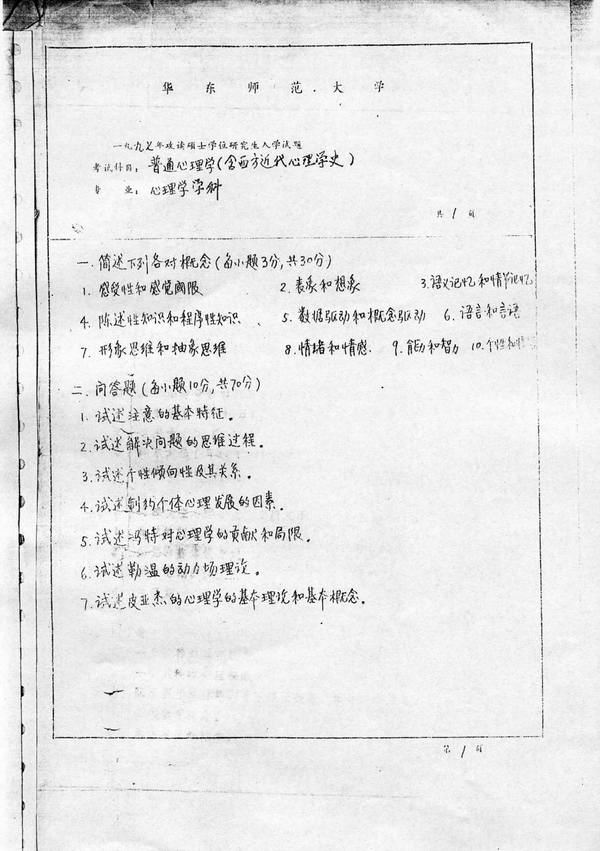 相关话题/华东师范大学 考研真题 心理学