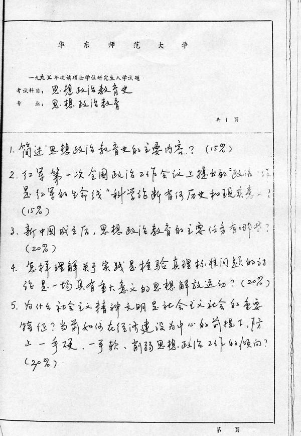 专业课考研经验 本站小编 FreeKaoyan 2018-01-22华东师范大学1997年考研真题-思想政治教育