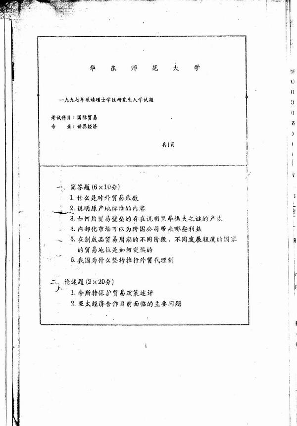 专业课考研经验 本站小编 FreeKaoyan 2018-01-22华东师范大学1997年考研真题-世界政治经济与国际关系