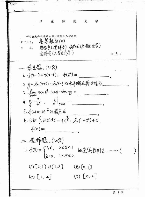 相关话题/华东师范大学 考研真题 高等数学