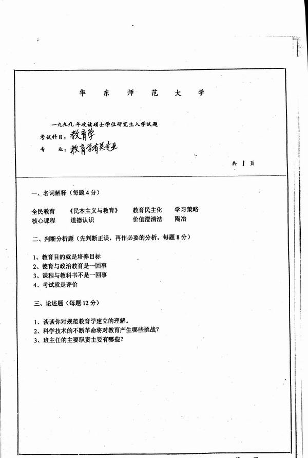 专业课考研经验 本站小编 FreeKaoyan 2018-01-22华东师范大学1999年考研真题-政治课教学法