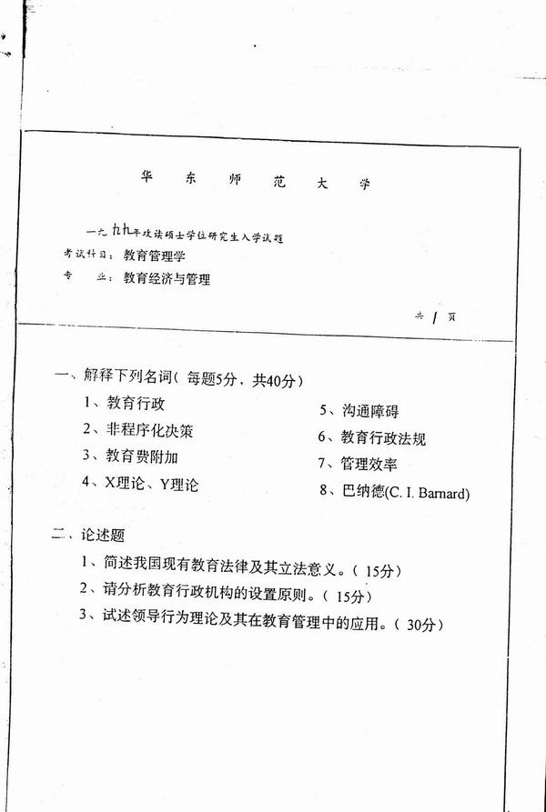 专业课考研经验 本站小编 FreeKaoyan 2018-01-22华东师范大学1999年考研真题-教育学