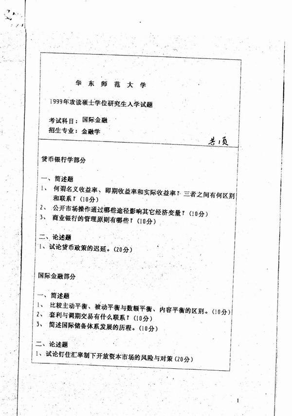 专业课考研经验 本站小编 FreeKaoyan 2018-01-22华东师范大学1999年考研真题-国际经济