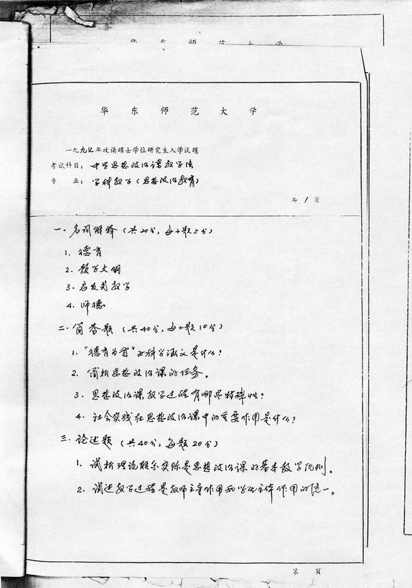 相关话题/考研真题 华东师范大学 政治课 教学法 中学