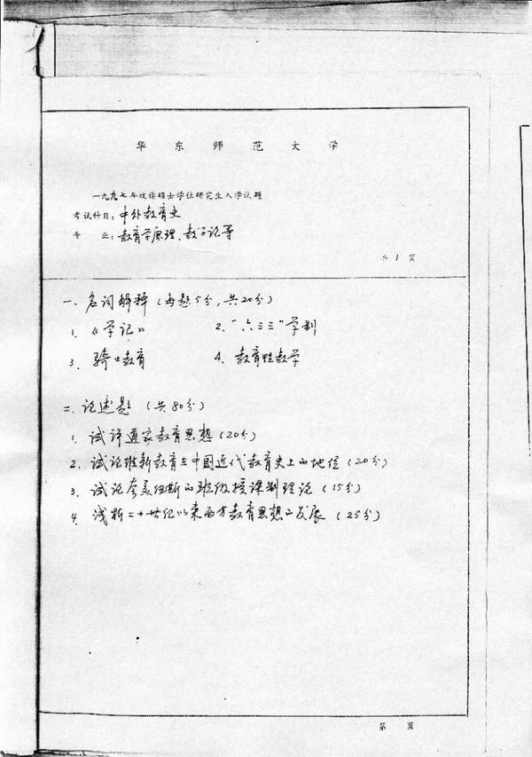 专业课考研经验 本站小编 FreeKaoyan 2018-01-22华东师范大学1999年考研真题-教育硕士专业