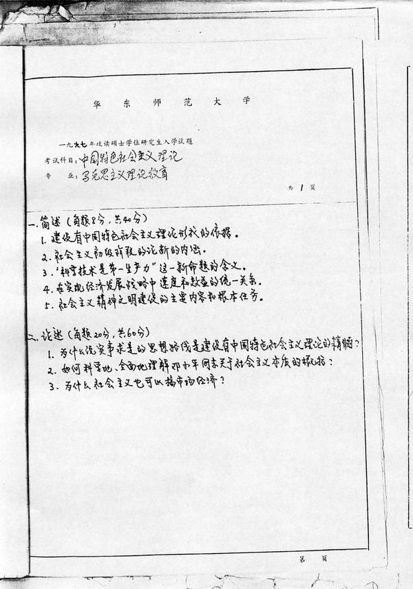 华东师范大学1997年考研真题-中国特色社会主义理论