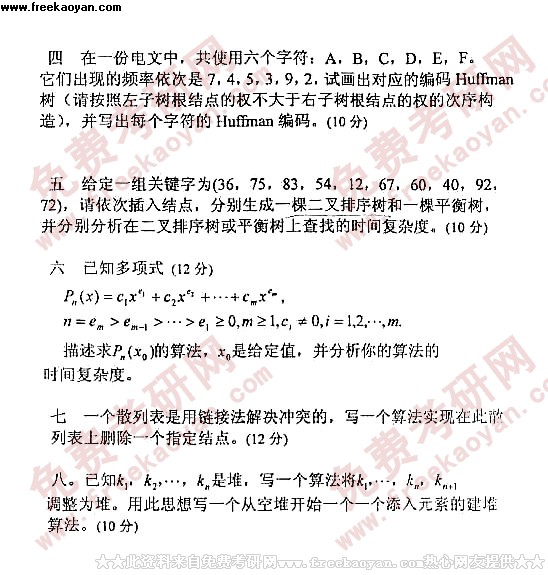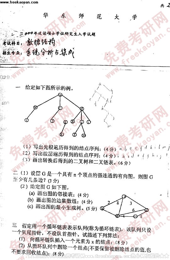 华东师范大学2000年考研真题-数据结构