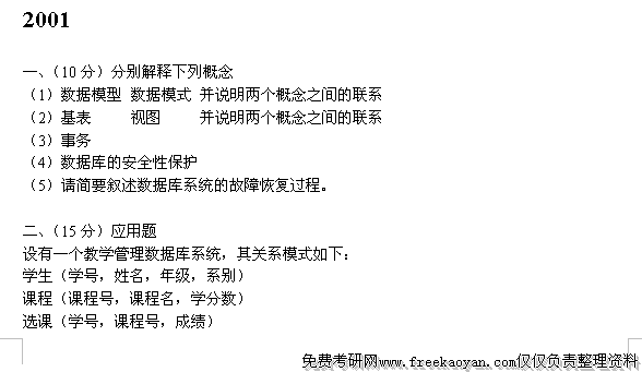 专业课考研经验 本站小编 FreeKaoyan 2018-01-22南大2001年研究生入学考试试题地理信息系统一、名词解释(20分)1、多边形边界和多边形区域2、数字插值与拟合3、空间数据库引擎(SDE)4、客户机/服务器结构5、部件对象模型二、简述空间数据结构的拓扑关系及其对GIS数据处理和空间分析有何重要意义(15分)三、简述GIS空间数据库设计的基本步骤(1 ...