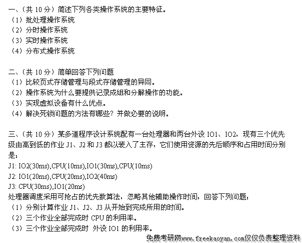 专业课考研经验 本站小编 FreeKaoyan 2018-01-22南京大学2003年考研真题-操作系统