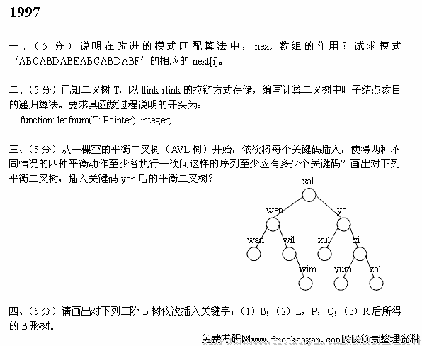 专业课考研经验 本站小编 FreeKaoyan 2018-01-22南京大学1998年考研真题-数据结构