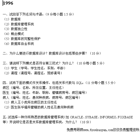 专业课考研经验 本站小编 FreeKaoyan 2018-01-22南京大学1997年考研真题-数据库