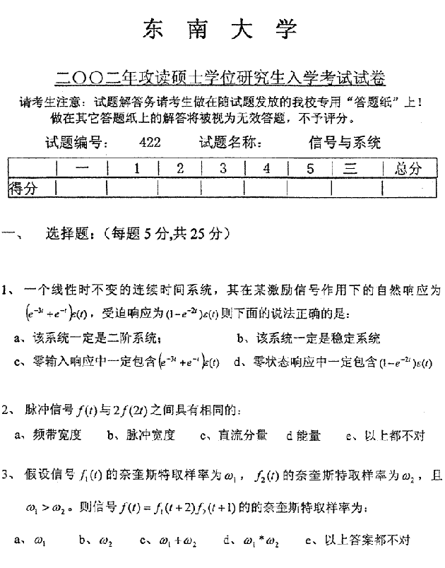 专业课考研经验 本站小编 FreeKaoyan 2018-01-22东南大学2002年考研真题-通信原理