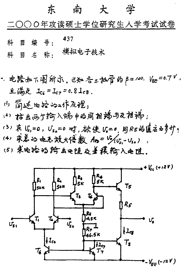 专业课考研经验 本站小编 FreeKaoyan 2018-01-22东南大学2000年考研真题-半导体集成电路
