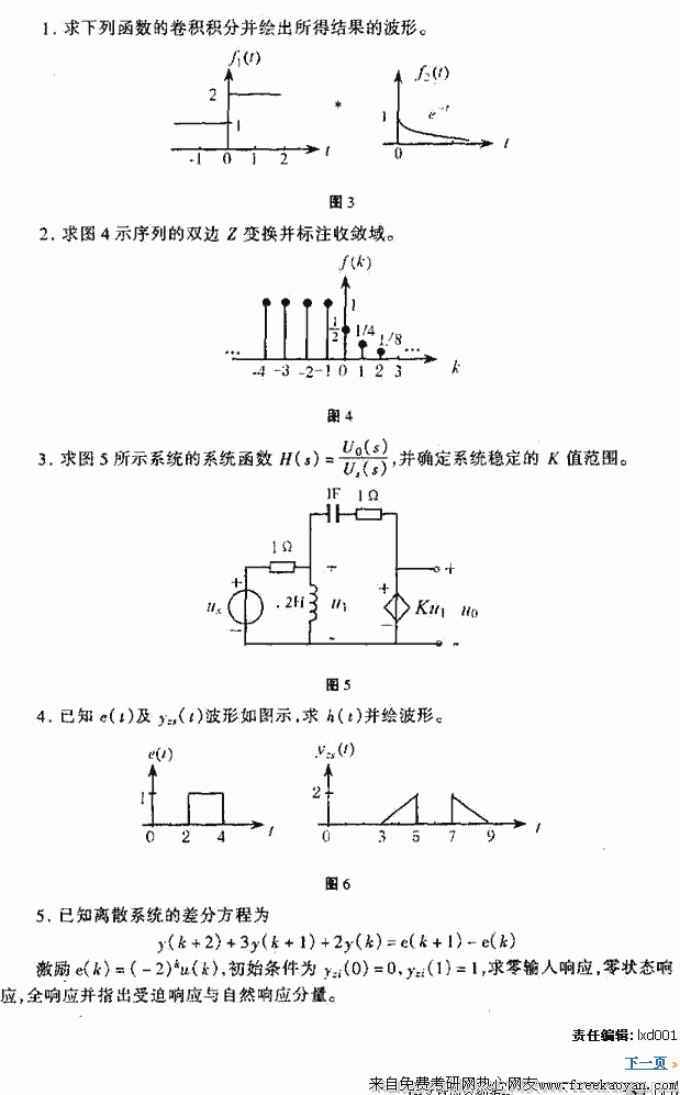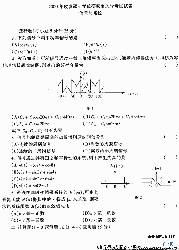 东南大学2000年考研真题-信号与系统