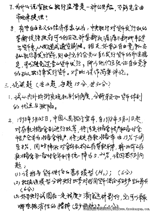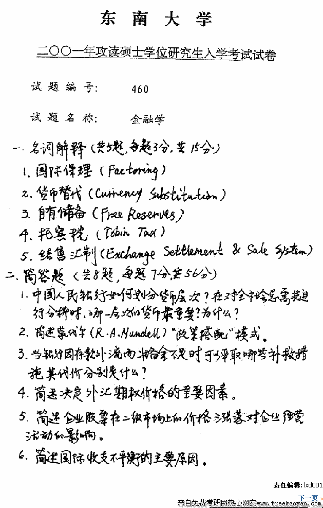 专业课考研经验 本站小编 FreeKaoyan 2018-01-22东南大学2000年考研真题-金融学