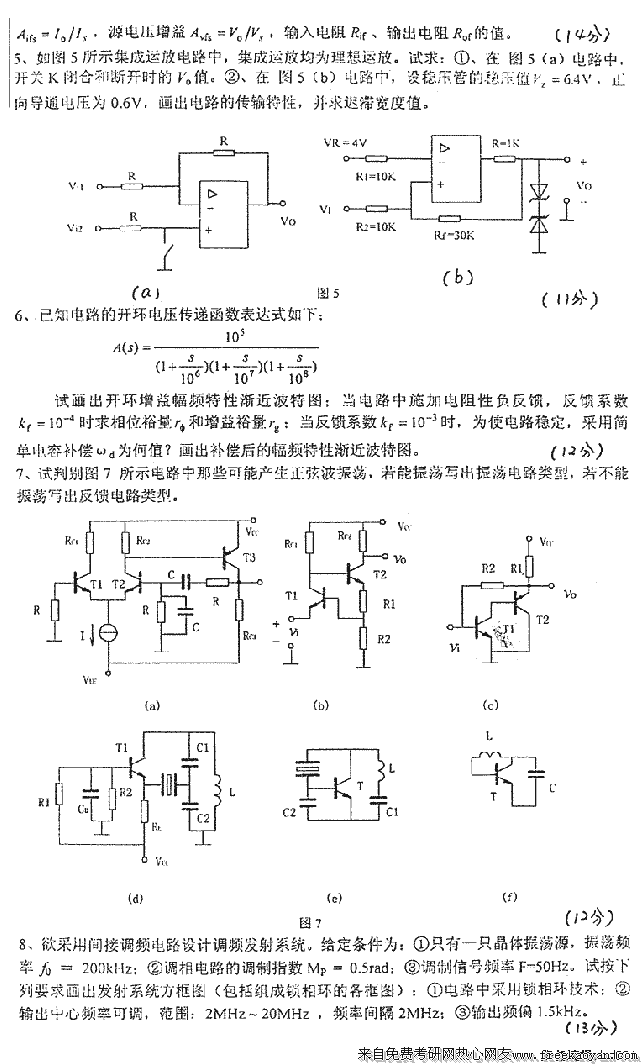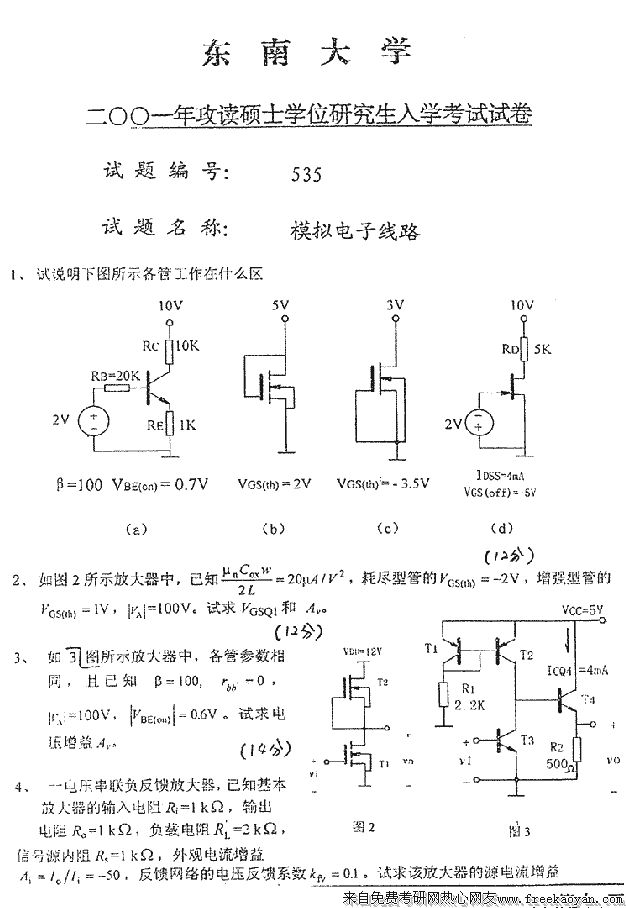 专业课考研经验 本站小编 FreeKaoyan 2018-01-22东南大学2000年考研真题-模拟电子技术