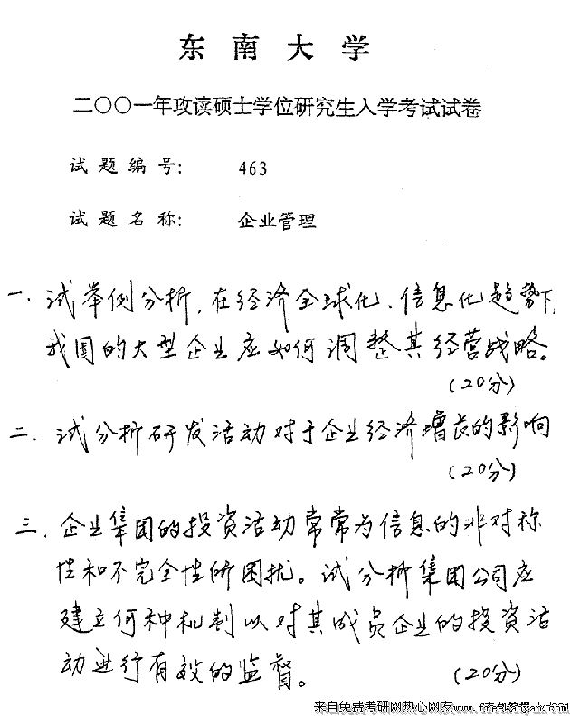 专业课考研经验 本站小编 FreeKaoyan 2018-01-22东南大学2001年考研真题-历史