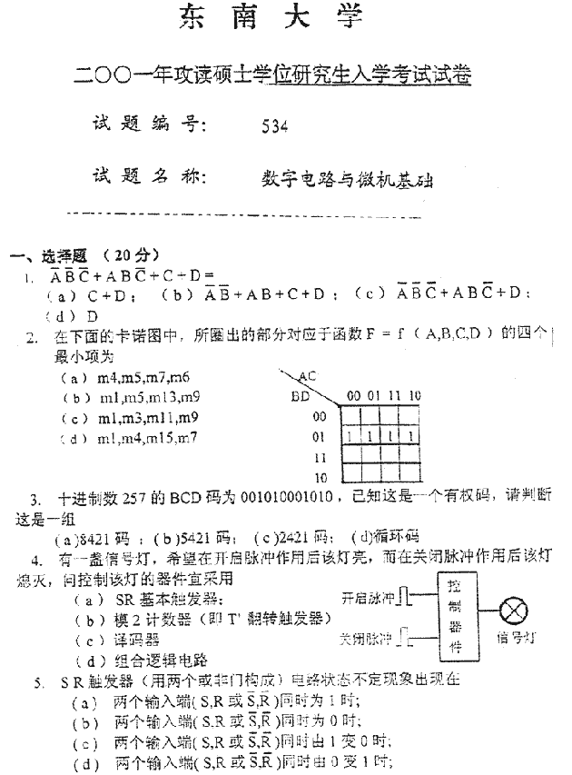 相关话题/考研真题 东南大学 数字电路 基础 微机