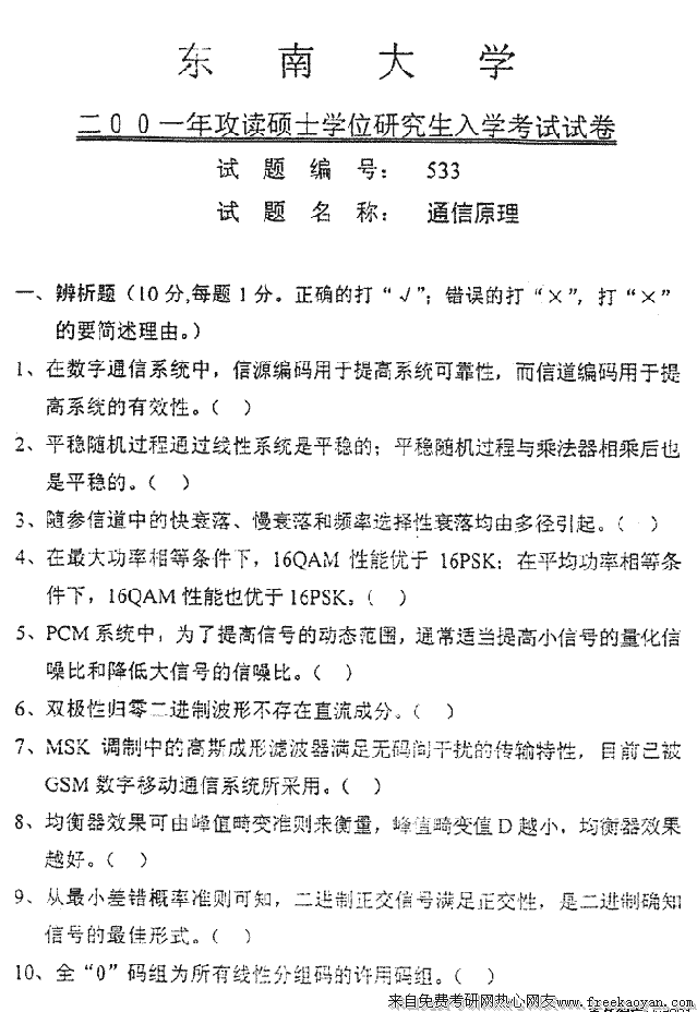 专业课考研经验 本站小编 FreeKaoyan 2018-01-22东南大学2001年考研真题-历史