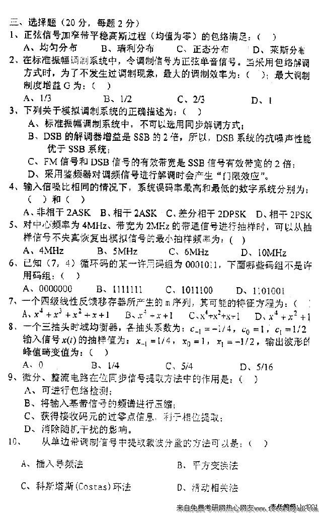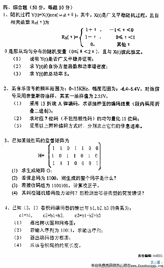 专业课考研经验 本站小编 FreeKaoyan 2018-01-22东南大学2000年考研真题-信号与系统