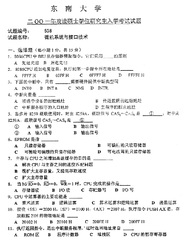 ...专业课考研经验 本站小编 FreeKaoyan 2018-01-22东南大学2000年考研真题-微机原理与应用