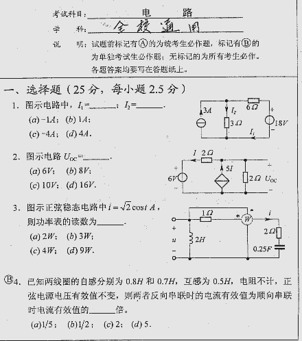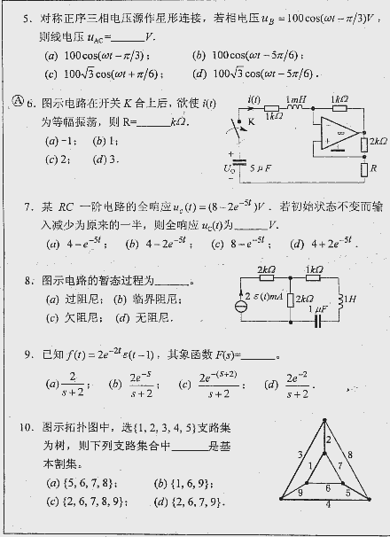 专业课考研经验 本站小编 FreeKaoyan 2018-01-22南京航天航空大学2000年考研真题-电路