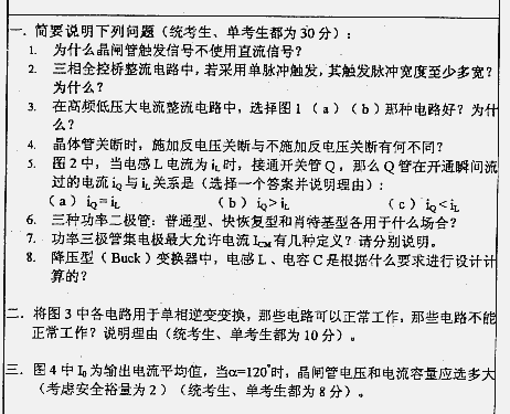 专业课考研经验 本站小编 FreeKaoyan 2018-01-22南京航天航空大学2000年考研真题-电力电子技术