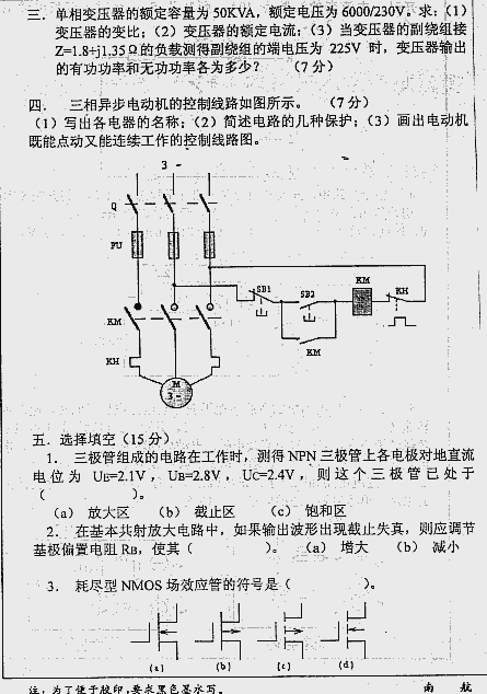 南京航天航空大学1999年考研真题-电工电子学