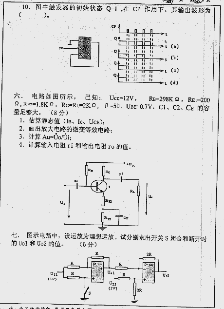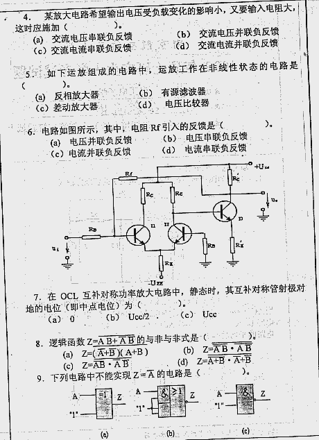 专业课考研经验 本站小编 FreeKaoyan 2018-01-22南京航天航空大学2000年考研真题-模拟和数字电路