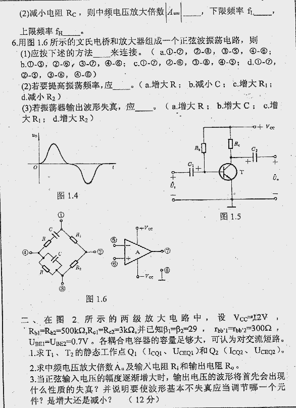 专业课考研经验 本站小编 FreeKaoyan 2018-01-22南京航天航空大学2000年考研真题-电工电子学
