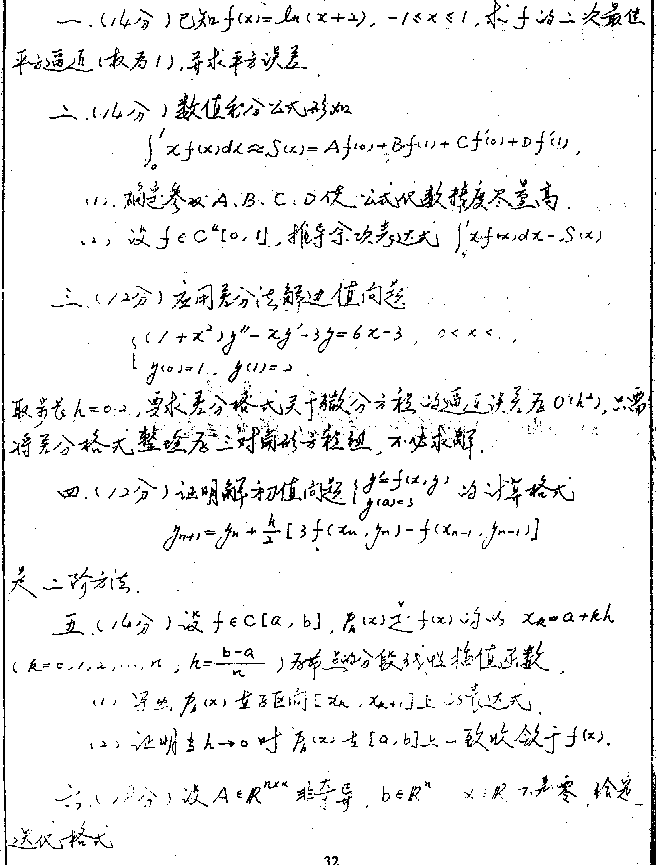 天津大学1998年考研真题-数值分析