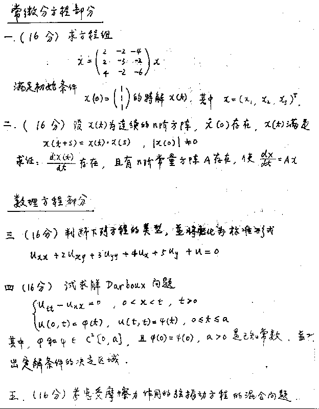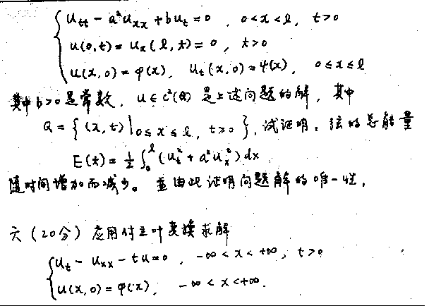 天津大学1998年考研真题-数理方程(含常微分方程)