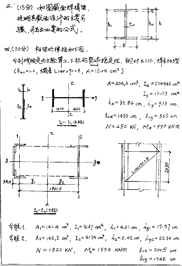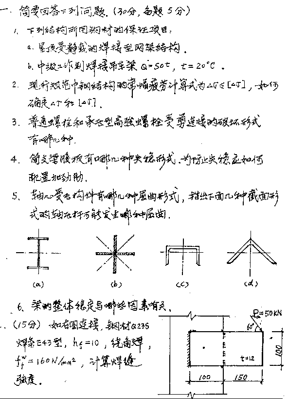 天津大学1998年考研真题-钢结构(含网架结构)