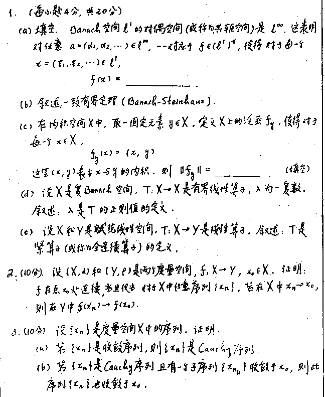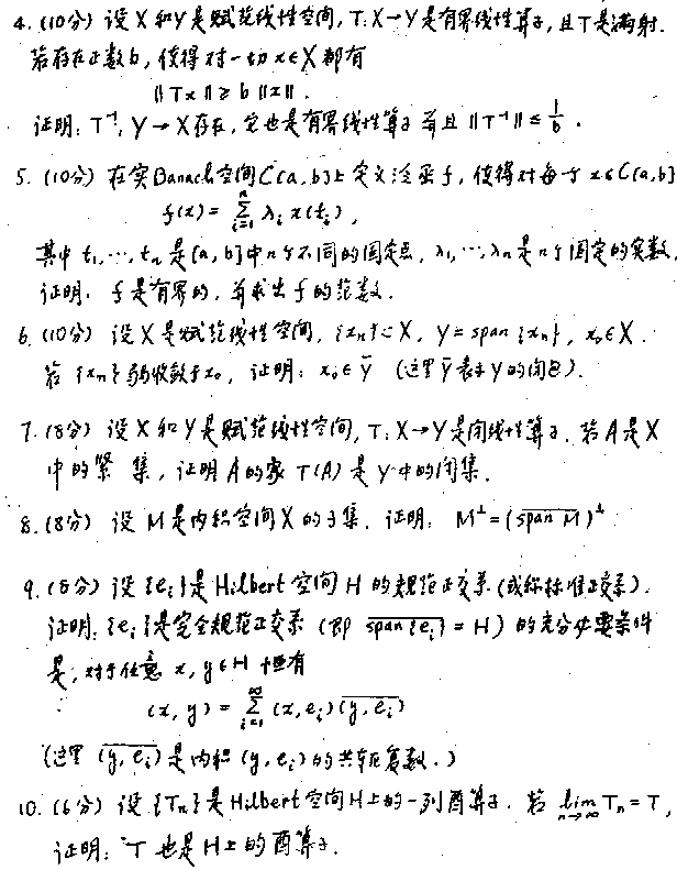 天津大学1998年考研真题-泛函分析(含度量空间)