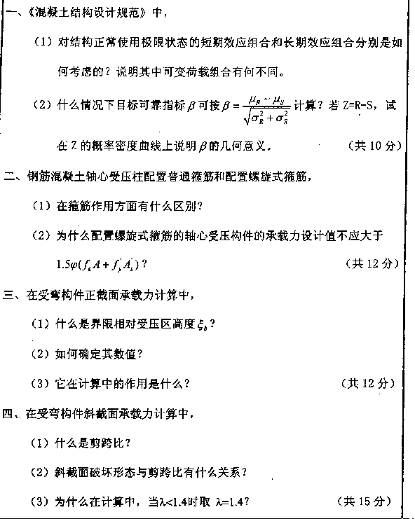 专业课考研经验 本站小编 FreeKaoyan 2018-01-222000港口工程学一、在基于可靠度理论的新的港工规范中,港工结构上的作用是如何分类的?写出作用效应持久组合设计表达式,并说明各符号的含义(15分)。二、绘出带卸荷板的方块码头断面示意图,并绘出主动土压力沿墙背的分布图(10分)。三、简述沉箱码头沉箱的宽度、长度和顶面高程是如何确定的,沉箱设前趾、后趾 ...