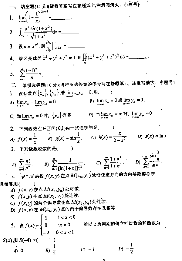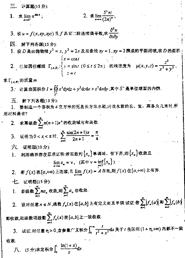 天津大学1999年考研真题-数学分析