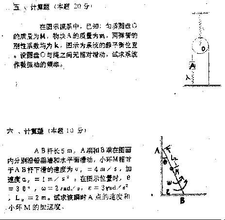 天津大学1999年考研真题-理论力学(含一个自由度的机械振动)