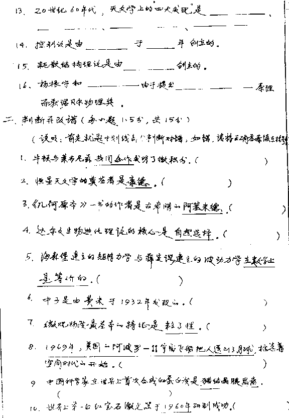 天津大学1999年考研真题-科学技术史(含当代科技发展)