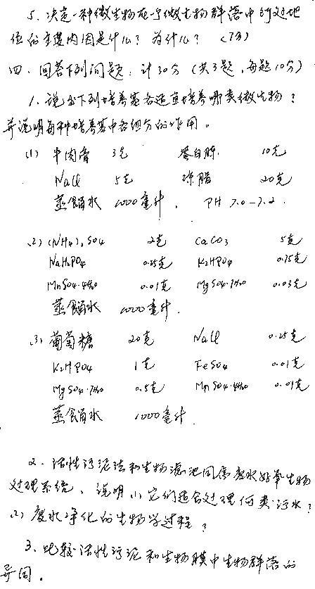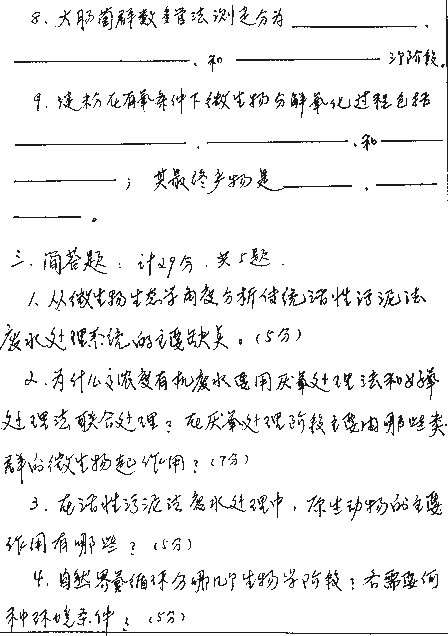 一、选择填空题(每小题2分,共12分)1 废水是指()。(1)不能用的水;(2)废弃的水;(3)使用过的水;(4)含有对环境造成污染的物质的水;(5)工厂排放的水。2 污水是指()。(1)城市下水管道中的水;(2)脏水;(3)含有对环境造成污染的物质的水;(4)生活设施或城市排放的水。3 污水处理的 ...