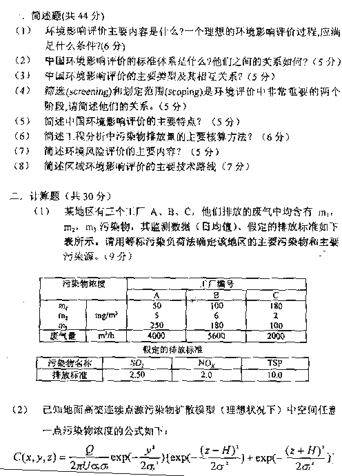 一、选择填空题(每小题2分,共12分)1 废水是指()。(1)不能用的水;(2)废弃的水;(3)使用过的水;(4)含有对环境造成污染的物质的水;(5)工厂排放的水。2 污水是指()。(1)城市下水管道中的水;(2)脏水;(3)含有对环境造成污染的物质的水;(4)生活设施或城市排放的水。3 污水处理的 ...专业课考研经验 本站小编 FreeKaoyan 2018-01-22南开大学2000考研真题-环境管理